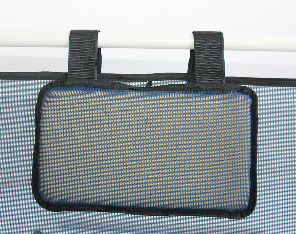 Acél vázszerkezettel rendelkezik. Erős műanyag háló biztosítja a megfelelő szellőzést és a tartósságot. A termékhez egy tépőzárral rögzített kis szivacs fejpárna is tartozik.