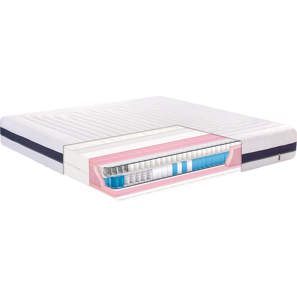 Twin 7-zone micropocket spring unit, 2 steel frames, 5-zone profiled HR foam, polyester felt geotextile