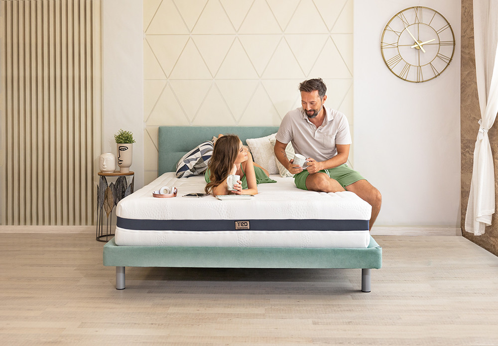 Ted Nuvola is a 7-zone exclusive pocket spring mattress. High-end medium-hard mattress with integrated Duo-Adapt system and 7-zone micropocket twin spring unit has twice the usual spring number. It evenly follows the line of the body and precisely adapts to different loads.