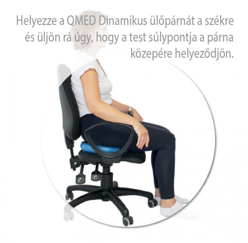 The QMED Dynamic seat cushion can be used at home or in the office to eliminate posture defects. It works best during an active sitting position, when the backrest of the chair is not used. The unstable surface activates and strengthens the deep muscles responsible for correct posture running alongside the spine, thus reducing back problems caused by prolonged sitting. Start using the product gradually. In case of long-term and regular use, be sure to do regular stretching exercises! It is also an ideal tool for foot massage, stimulates blood circulation, reduces stress and feeling dull.