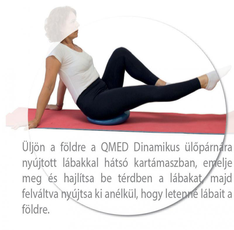 Static sensory motor exercises: the balancing disc is an excellent tool for coordination and balance exercises on a stable surface and for open kinematic chain exercises e.g. maintaining balance with one foot standing on the balancing disc, placing your weight from one foot to the other. After injuries to the muscle system, it improves the zikai coordination of patients. In older age groups, it increases the feeling of stability, reduces the risk of falling.